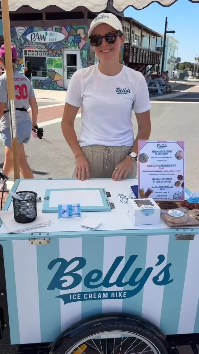 Based in Flagler Beach and ready to roll to nearby towns, Belly’s Ice Cream Bike brings handmade, small batch ice cream, cookie ice cream sandwiches and popsicles straight to your private event. With our vintage style bike, nostalgic flavors, and photo-worthy setup, we make dessert the highlight of any celebration.