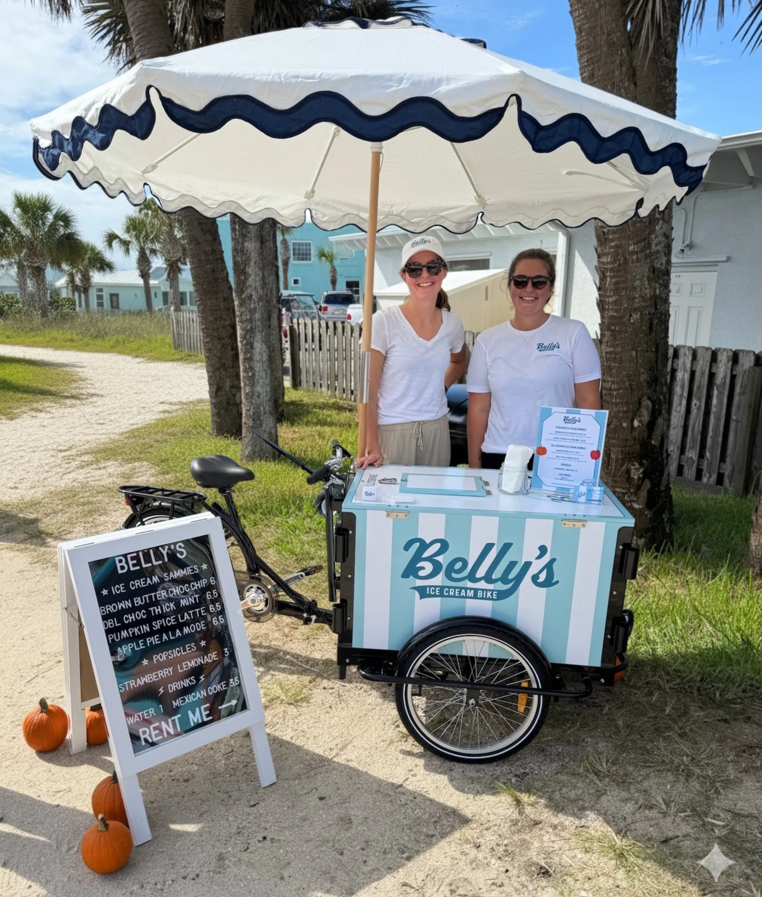 Based in Flagler Beach and ready to roll to nearby towns, Belly’s Ice Cream Bike brings handcrafted ice cream sandwiches and popsicles straight to your private event. With our vintage bike, nostalgic flavors, and photo-worthy setup, we make dessert the highlight of any celebration.